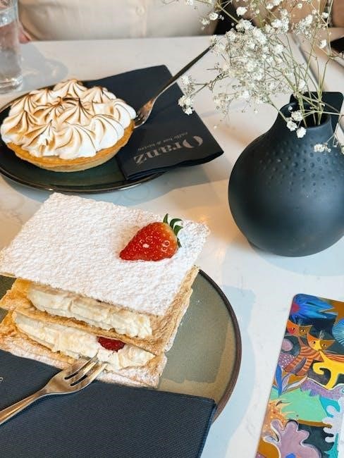 The Olga’s Menu PDF is a comprehensive guide to exploring the restaurant’s diverse offerings, from appetizers to desserts. It provides detailed descriptions, prices, and images, making it easy for customers to discover new items and plan their meals. The PDF also highlights seasonal updates and collaborations, such as the Shrimp PoBoy with McClures Pickles, ensuring diners stay informed about the latest additions. Its accessibility and convenience make it an essential resource for both in-store dining and takeout planning, enhancing the overall dining experience.